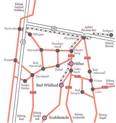 In Bad Wildbad am ersten Kreisverkehr rechts ab in Richtung Ortsmitte, vorbei am Bahnhof. Sie befinden sich auf der König-Karl-Straße. Nach 250 m ein weiterer Kreisverkehr. Hier biegen Sie direkt rechts in die Paulinenstraße ab um dann nach 50 m links in die Rennbachstraße abzubiegen. Nach weiteren 50 m teilt sich die Straße und führt links am Hang entlang (Blöcherweg) steil den Sommerberg hinauf. Folgen Sie dem Straßenverlauf bis ganz nach oben. An der Kreuzung fahren Sie direkt geradeaus, ca. 25 m und Sie sind am Ziel.Auf der rechten Seite das GÄSTEHAUS HIRZEL.